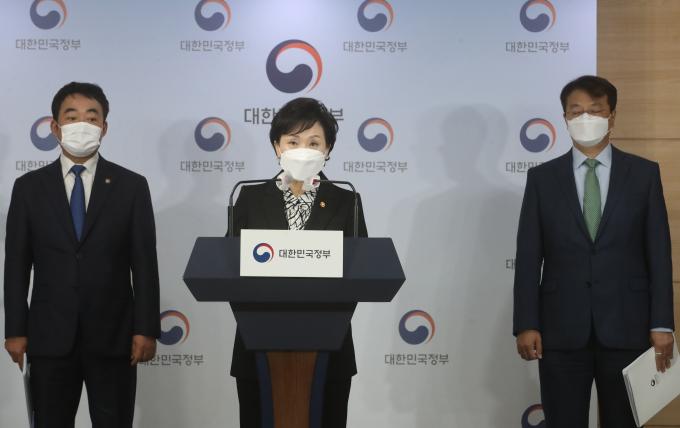김현미 국토교통부 장관이 19일 오전 서울 종로구 정부서울청사에서 서민, 중산층 주거안정 지원방안을 발표하고 있다.