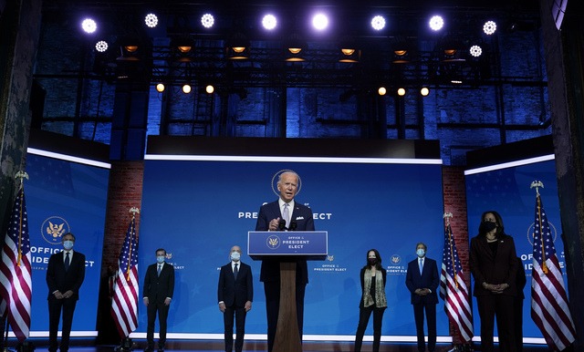 24일(현지시간) CNN에 따르면 바이든 당선인은 이날 델라웨어주 윌밍턴 퀸 시어터에서 전날 인선한 외교안보팀과 함께 기자회견을 열었다.