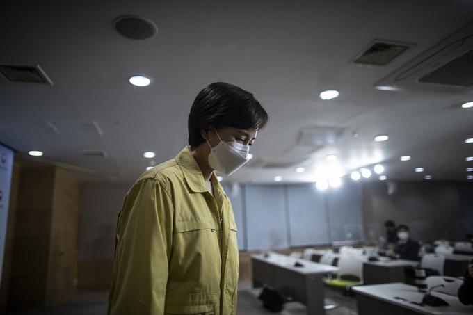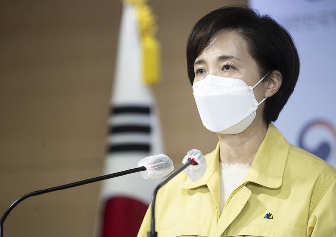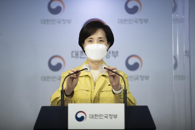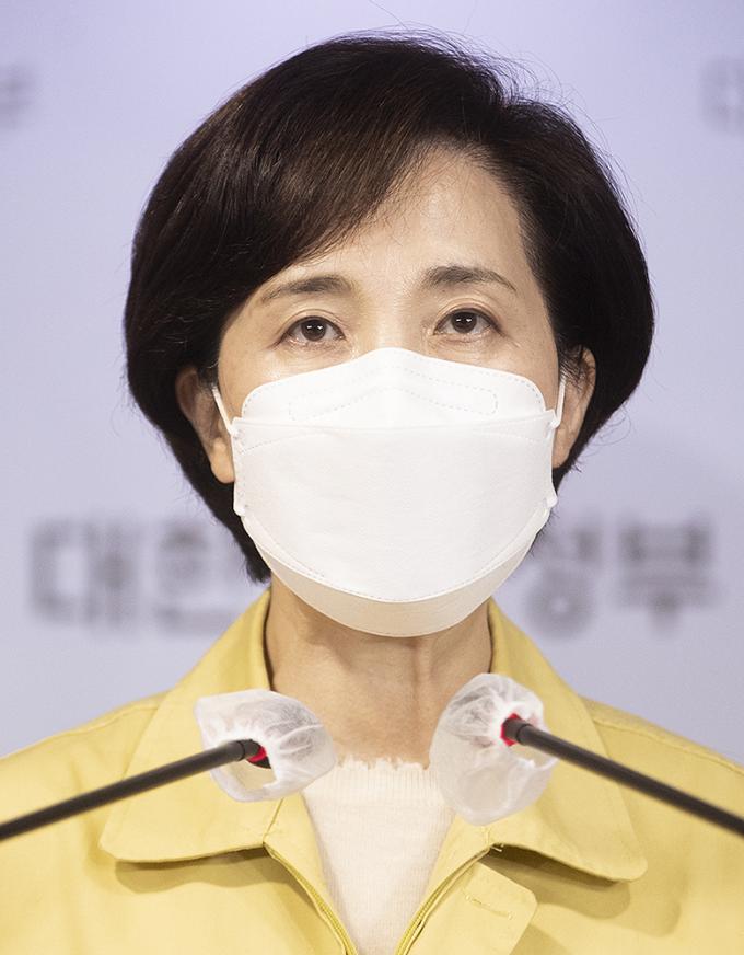 유은혜 사회부총리 겸 교육부 장관이 26일 오전 서울 종로구 정부서울청사에서 수능시험 시행 일주일 전 대국민 호소문을 발표하고 있다.