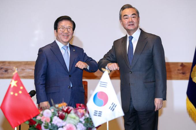 왕 부장은 이번 방한에서 여권 인사들을 두루 만났다. 박 의장 예방에 앞서 문정인 대통령 통일외교안보특보와 김기정 국가안보전략연구원장, 홍익표·윤건영 더불어민주당 의원 등과 80분가량 비공개 조찬을 했다.