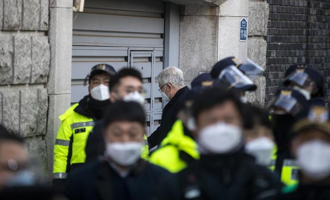 광주지방법원에서 열리는 1심 선고 공판에 전직 대통령 전두환 씨의 출석이 예정된 30일 오전 민정기 전 청와대 비서관이 서울 서대문구 연희동 전 씨 자택으로 들어가고 있다.