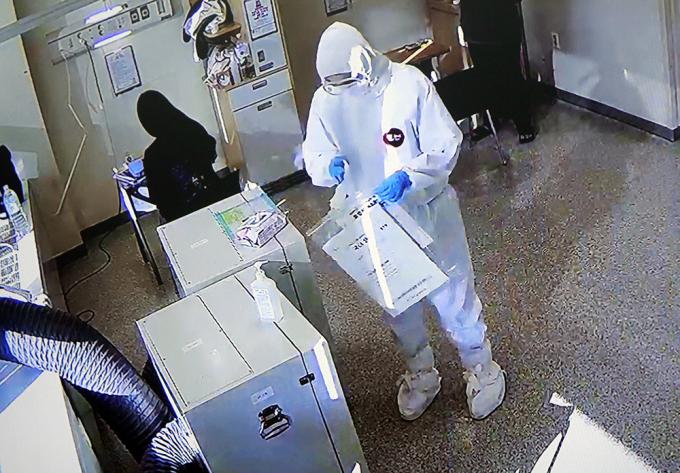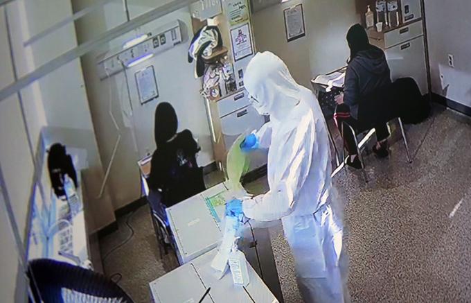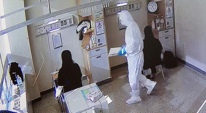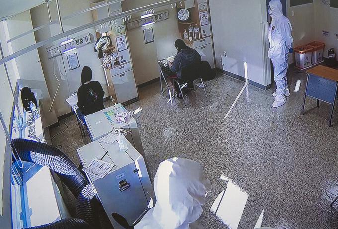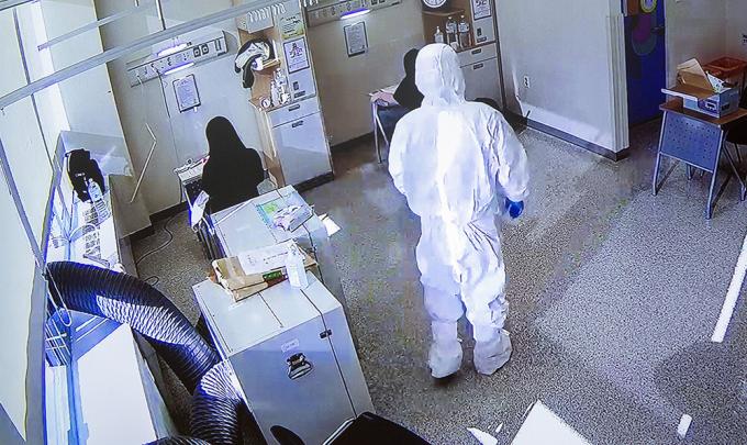 2021학년도 대학수학능력시험일인 3일 오전 서울 중랑구 서울의료원 격리병동에 마련된 코로나19 확진 수험생을 위한 임시 고사장에서 수험생이 시험을 치르는 모습이 CCTV 화면을 통해 보여지고 있다.[사진공동취재단]