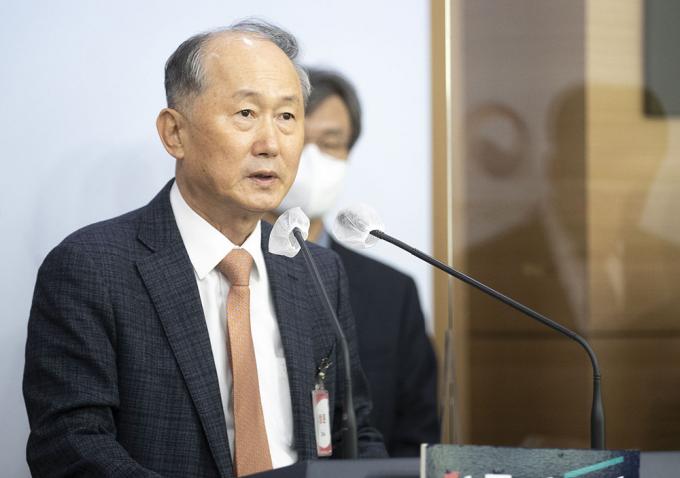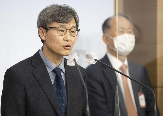 남재환 가톨릭대 의생명과학과 교수가 8일 오전 서울 종로구 정부서울청사 별관 브리핑실에서 열린 코로나19 백신 도입 계획 발표 브리핑에서 질문에 답하고 있다.