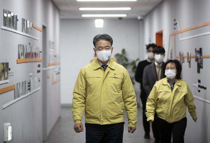 박능후 중앙재난안전대책본부 1차장(보건복지부 장관)이 14일 오전 서울 중구 서울시청에서 열린 코로나19 대응 중앙재난안전대책본부 겸 수도권 상황점검회의에 참석하고 있다.