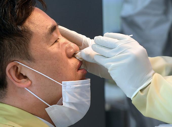 서정협 서울시장 권한대행이 17일 서울 중구 서울광장에 마련된 임시선별진료소에서 코로나19 검사를 받고 있다. 17일 중앙방역대책본부(방대본)에 따르면 이날 0시 기준 신규 확진자는 1014명으로 이틀째 1000명대를 이어갔다. 특히 서울 지역은 423명으로 역대 최다 확진자를 기록했다.