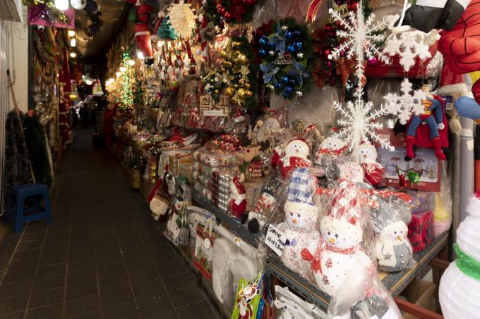 코로나19 3차 대유행이 지속되고 있는 18일 오전 서울 중구 남대문시장 내 크리스마스 용품점이 한산하다. 중앙방역대책본부는 이날 0시 기준 코로나19 신규 확진자 수가 1062명을 기록했다고 밝혔다.
