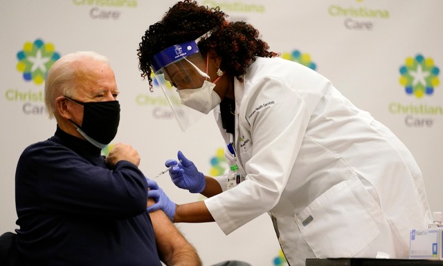 바이든 당선인은 21일(현지시간) 델라웨어 뉴어크의 크리스티아나 케어에서 화이자 백신을 맞았다. 이 장면은 ABC, CNN, CNBC 등 현지 언론을 통해 생중계됐다.