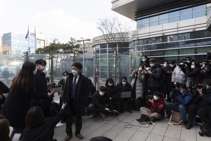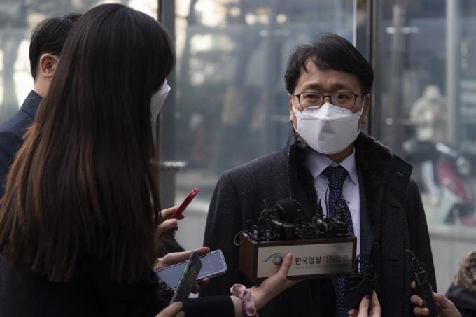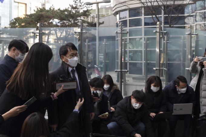 법무부 측 대리인 이옥형 변호사가 22일 오후 서울 서초구 서울행정법원에서 열린 윤석열 검찰총장에 대한 정직 처분 집행정지 재판에 출석하며 취재진 질문에 답하고 있다.