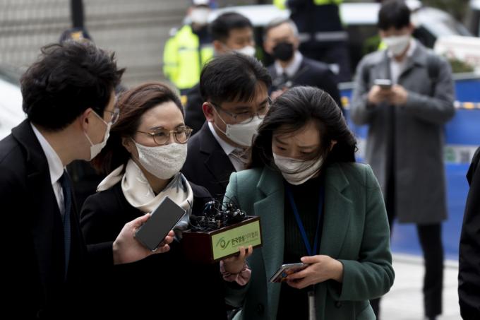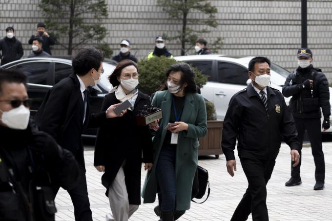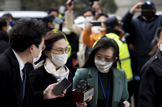 자녀 입시비리와 사모펀드 투자 의혹 등 혐의로 재판에 넘겨진 정경심 동양대 교수가 23일 오후 서울 서초구 서울중앙지법에서 열리는 1심 선고 공판에 출석하고 있다.