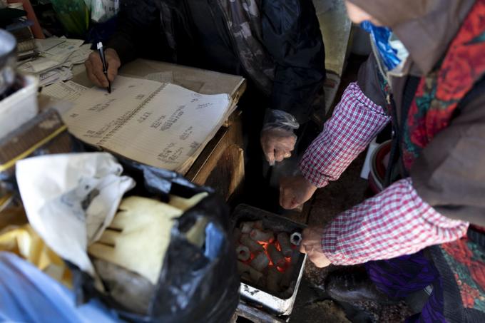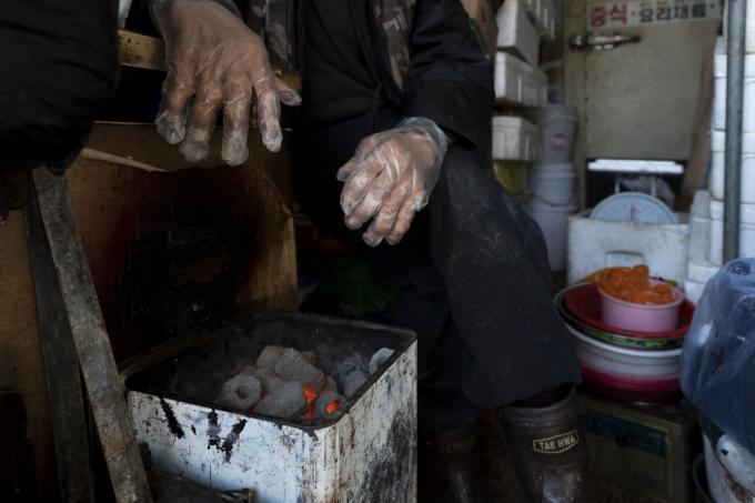작은 숯불에 손을 녹이던 할머니가 추위를 스케치하던 기자에게 말을 건넸다.