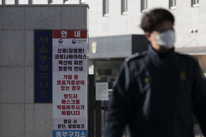 서울동부구치소 관련 코로나19 확진자가 누적 792명, 사망자 1명으로 확인된 30일 오후 서울 송파구 서울동부구치소 입구에 마스크 착용 안내문이 붙어 있다. 법무부는 이날 오전부터 지난 진단검사에서 음성을 받은 동부구치소 직원 530여 명과 수용자 1300여 명에 대한 4차 전수 검사를 진행한다고 밝혔다.