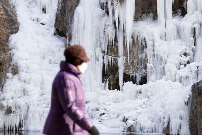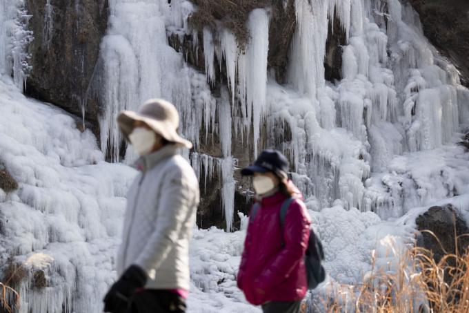 절기상 1년중 가장 춥다는 소한(小寒)인 5일 오전 서울 서대문구 홍제천 인공폭포가 꽁꽁 얼어있다.