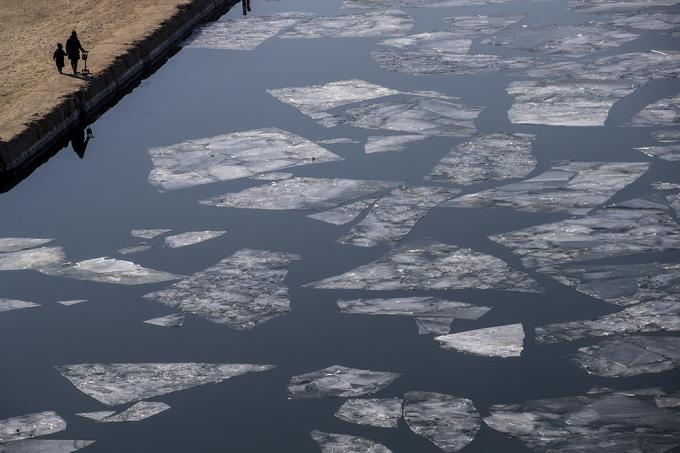 북극발 한파가 강해져 추운 날씨가 계속되고 있는 6일 오후 서울 광나루 한강공원에서 바라본 한강이 얼어있다.