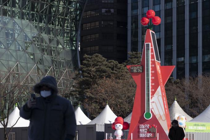 북극발 한파로 전국에 한파특보가 내려진 8일 서울 중구 시청광장에 설치된 사랑의 온도탑이 95.7도를 가리키고 있다.KPI뉴스 / 문재원 기자 mjw@kpinews.kr