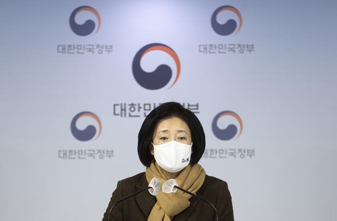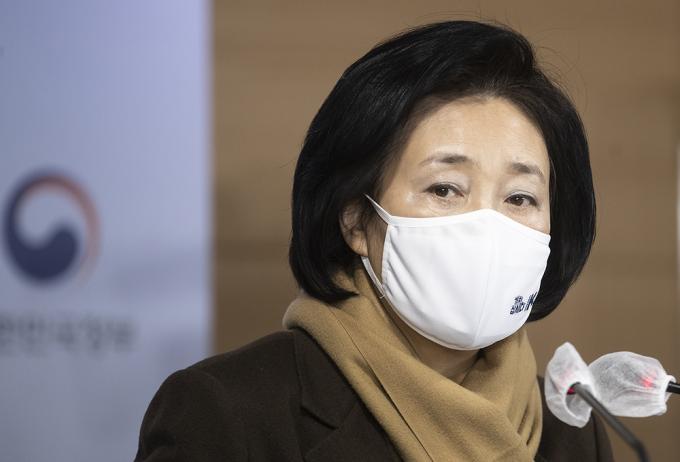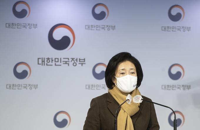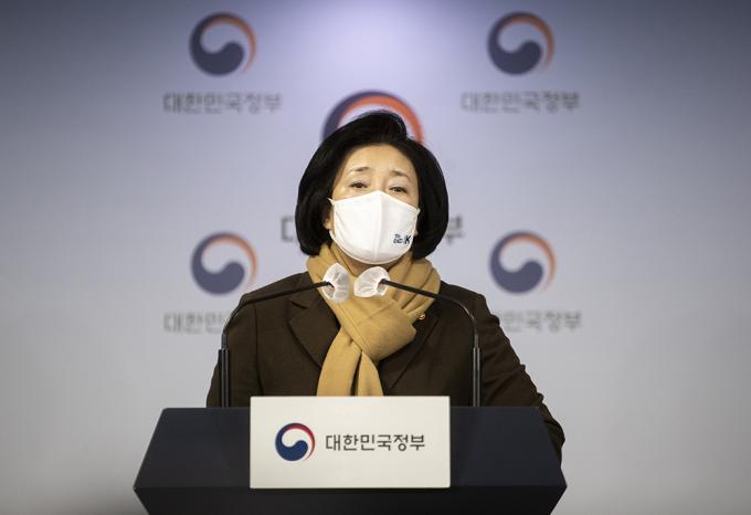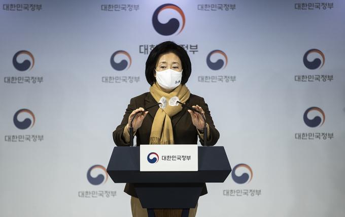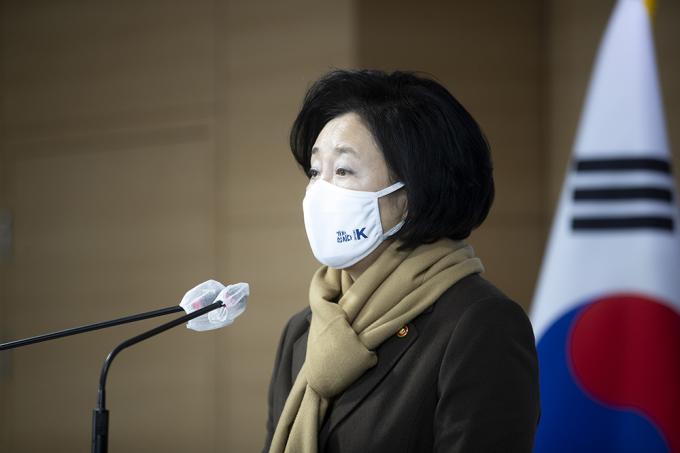 박영선 중소벤처기업부 장관이 12일 오전 서울 종로구 정부서울청사에서 소상공인 버팀목 자금 관련 브리핑을 하고 있다.