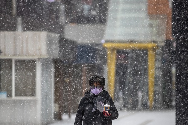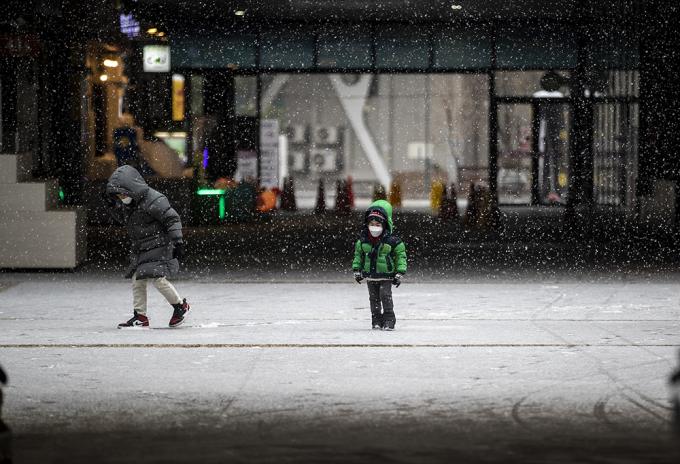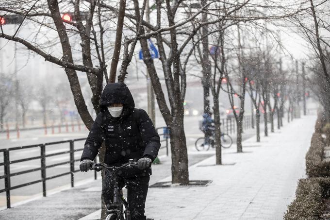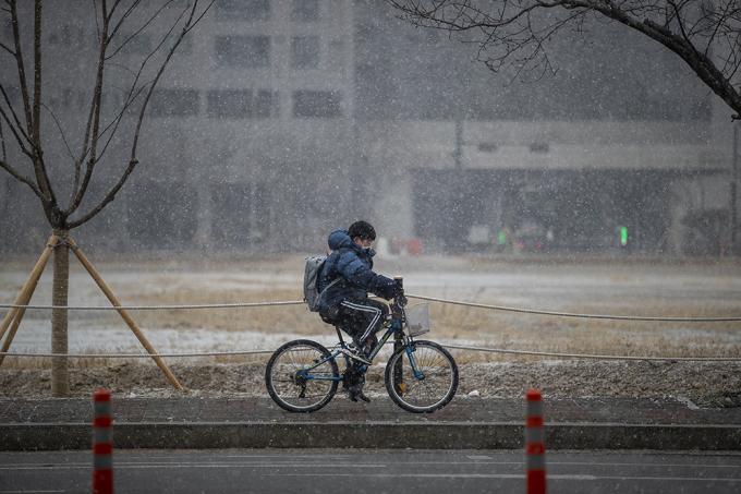 12일 오후 경기 고양시 원마운트에 함박눈이 내리고 있다.