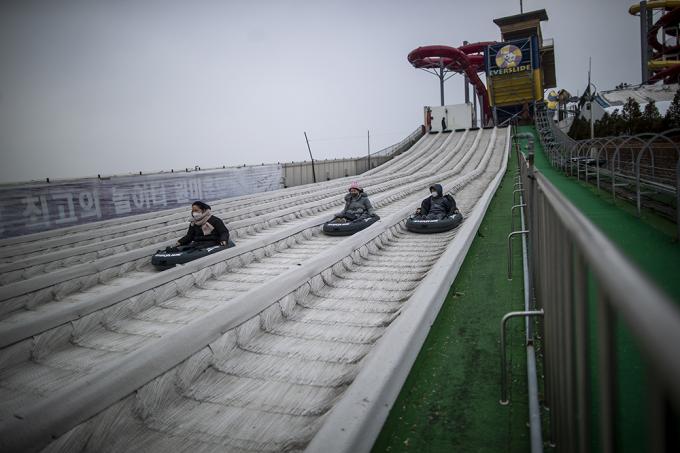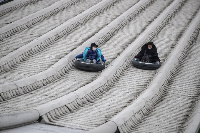 실외 겨울 스포츠 시설 운영 제한적 허용으로 스키장 등이 재개장한 12일 오후 경기 고양시 원마운트 야외 썰매장을 찾은 시민들이 즐거운 시간을 보내고 있다. 원마운트는 고객의 안전과 방역지침을 준수하면서 야외 아이스링크 스케이트장과 야외 썰매장을 회차별 타임 운영제도를 개장한다. 하루 3회차로 나눈 회차별 타임 운영제도 스케이트장은 오전 11시부터 13시까지, 13시 30분부터 15시 30분까지, 16시부터 18시까지 썰매장은 오전 11시부터 12시 30분까지, 13시부터 14시 30분까지, 15시부터 17시까지 나눠 운영한다.