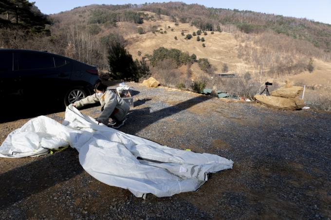 탁 트인 언덕. 차를 멈춰 세운 차 씨는 트렁크에서 짐을 하나둘 꺼내기 시작했다.