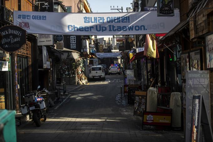 20일 오후 서울 이태원엔 적막감만 가득했다. 사람의 발길이 끊긴지 오래인듯 했고, 굳게 닫힌 상가 창문엔 휴업, 폐업을 알리는 안내문만 선명했다.