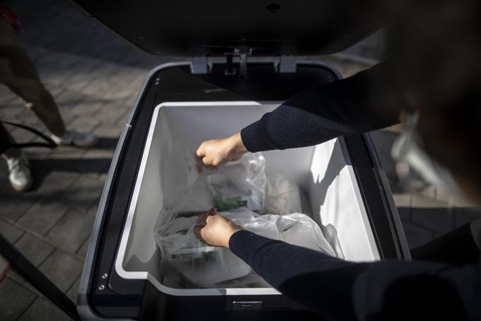 음식점 앞에 도착하면 음식점 직원이 나와 앱을 통해 로봇 '일개미'의 뚜껑을 열고 주문한 음식을 넣으면 다시 배송을 시작한다. 주변 행인들은 로봇이 배송하는 모습을 보며 사진을 찍는 등 신기한 관심을 보였다. 2세대 로봇 '일개미'는 50L의 용량을 담을 수 있고, 움직일 수 없는 정도의 날씨가 아니면 배송이 가능하며 100% 충전 시 8시간 정도 주행이 가능하다. 관계자는 "실제로 지난 폭설이 내렸을 때에도 배달을 무사히 마쳤다"고 말했다.