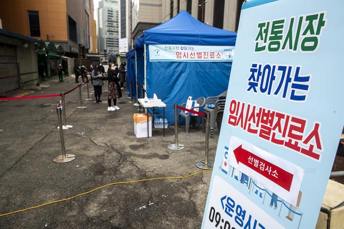 서울 중구가 21일 하루 남대문시장 삼익패션타운 인근에 찾아가는 임시선별진료소를 설치하고 가게를 비우기 어려워 선별진료소를 찾지 못하는 상인들을 대상으로 선제검사를 진행했다. 유동인구가 많은 시장에 코로나19 확산을 사전에 차단해 안심할 수 있는 전통시장을 만든다는 목적이다. 임시선별진료소는 오후 6시까지다. 중구는 시장 상인 400여명을 중점 대상으로 선정해 검사를 진행하고 상인회와 협력해 인접시장 상인들도 폭 넓게 검사받을 수 있게 조치할 예정이다.