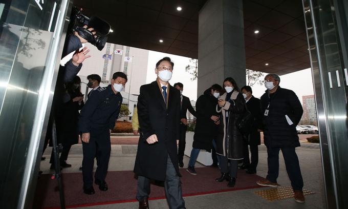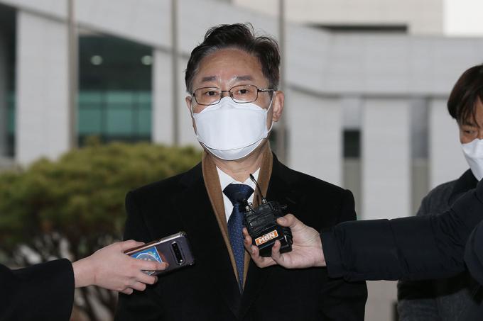 박범계 신임 법무부 장관이 취임 첫날인 28일 오전 서울 송파구 서울동부구치소에 방문하며 취재진의 질문에 답하고 있다.