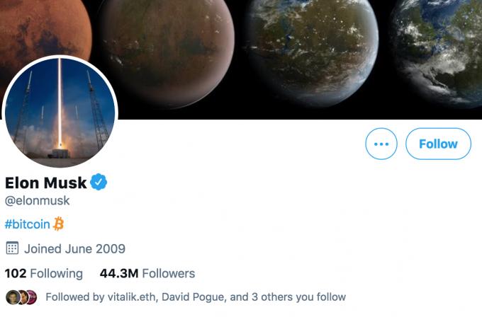 29일(현지시간) 로이터통신, 야후파이낸스 등에 따르면 일론 머스크는 전날 트위터 자기 소개란에 '비트코인(bitcoin)'이라는 해시태그를 게시했다.