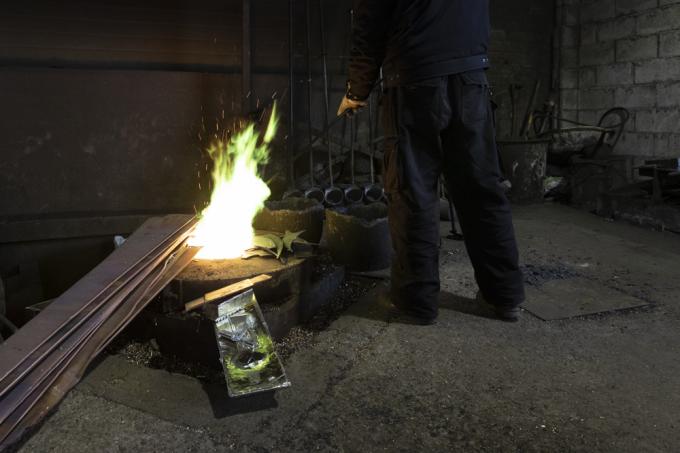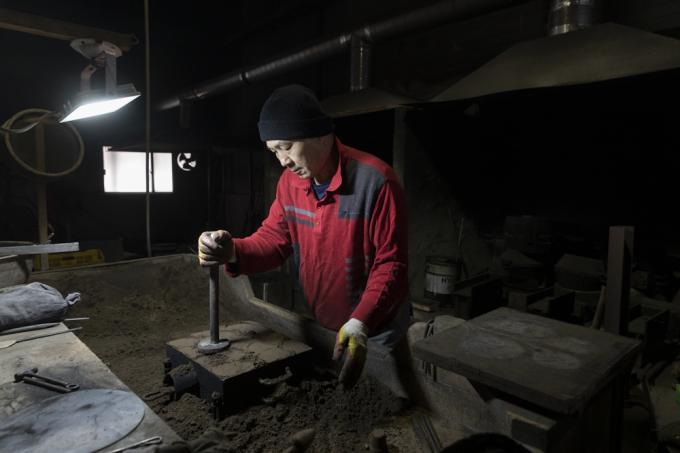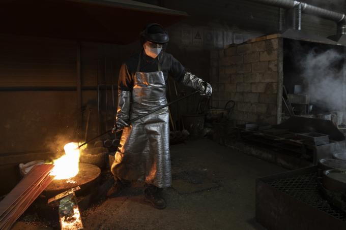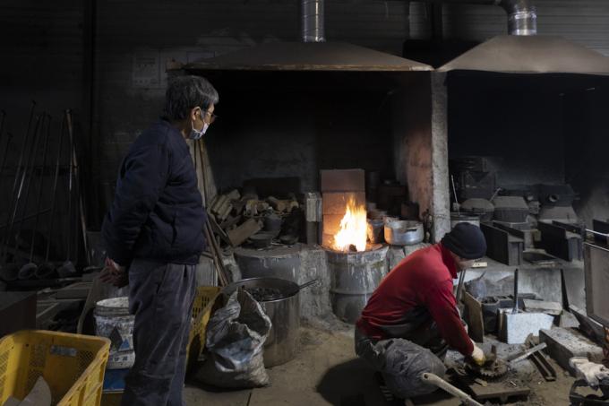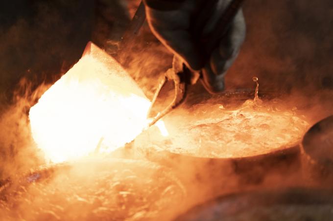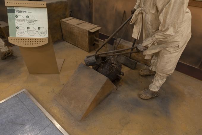"유기는 빛깔이 중요합니다. 재룟값 낮추려고 값싼 원자재를 사용하면, 바로 나타나요. 오늘은 용광로에 재료를 녹이는 날입니다."