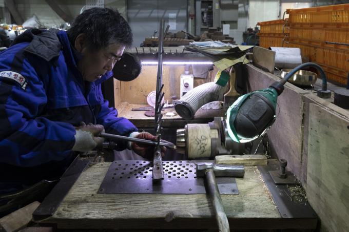 지난 1월 중순 경기 안성의 유기 공방. 국가중요무형문화재 제77호 김수영(72) 유기장이 혼을 불어넣어 작업하는 창작 현장이다. 그는 이곳에서 선친 고 김근수 선생에게 가업을 이어받아 우리나라 유기의 명맥을 이어가고 있다.