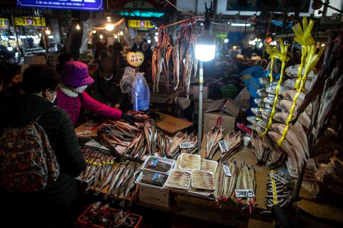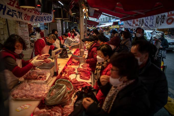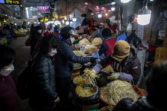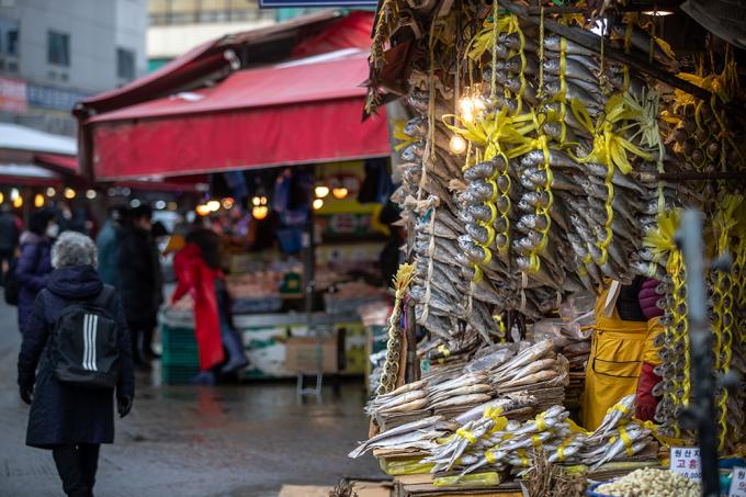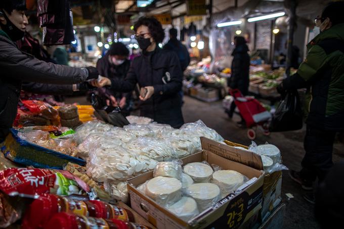 5일 오전 서울 동대문구 경동시장에서 시민들이 장을 보고 있다. 서울시는 1월 29일부터 2월 10일까지 민족 최대 명절을 설을 맞아 시내 139개 전통시장에서 설 제수용품과 농수축산물을 최대 50% 할인된 가격으로 판매한다고 밝혔다. 참여시장에서는 공통적으로 행사기간 동안 명절 제수용품과 농수축산물을 5~50%까지 할인된 가격에 판매된다.
