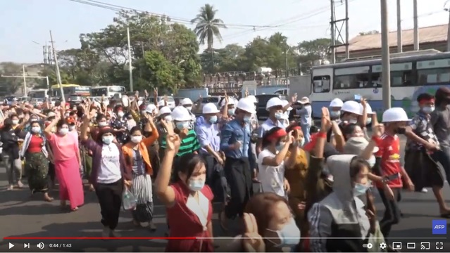 이날 AFP통신은 약 1000명이 양곤 시내에서 "군부 독재 타도" 등을 외치며 행진했다고 보도했다.