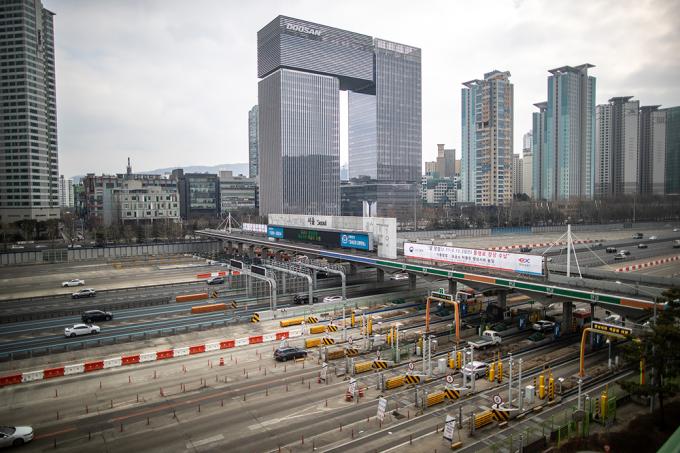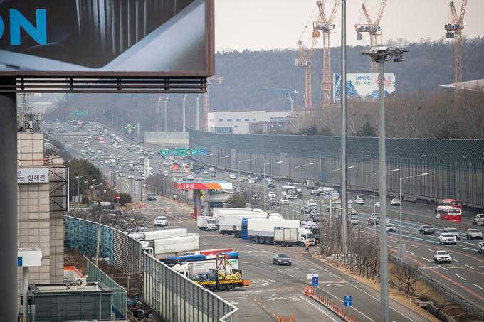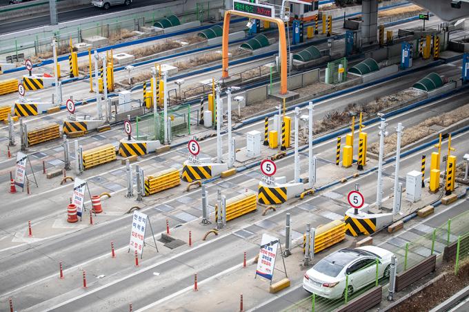 민족 대명절 설 연휴를 하루 앞둔 10일 경기 성남시 서울톨게이트에서 바라 본 경부고속도로 양방향이 원활한 모습을 보이고 있다. 한국도로공사에 따르면 10일 하루 전국 교통량을 463만대로 예상하고 귀성 방향은 오후 6시에서 7시 사이 절정에 달할 것으로 예상했다.