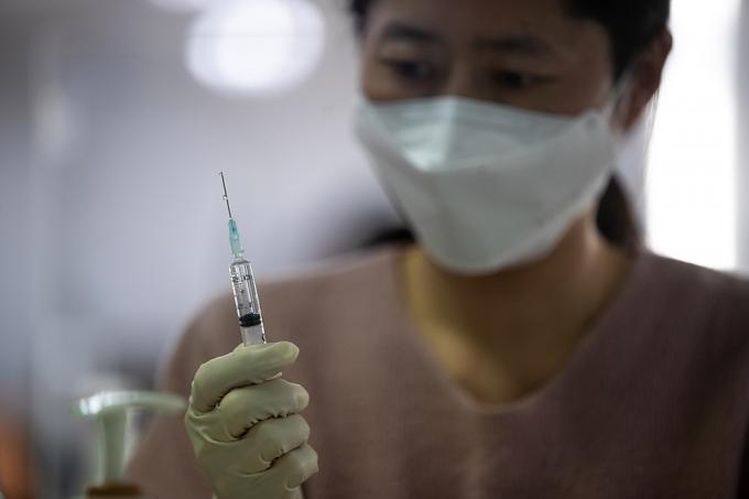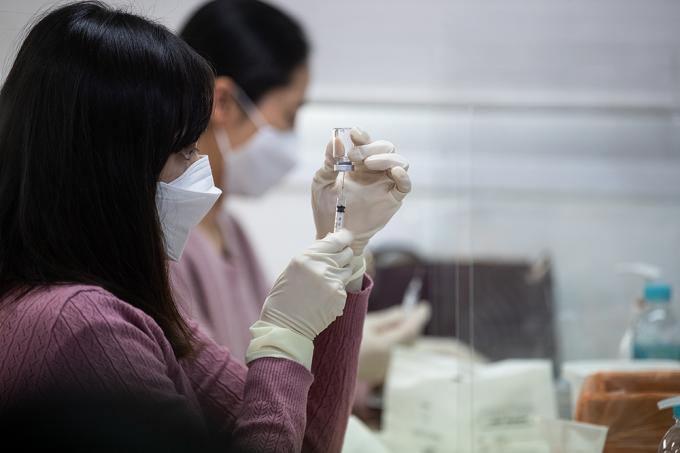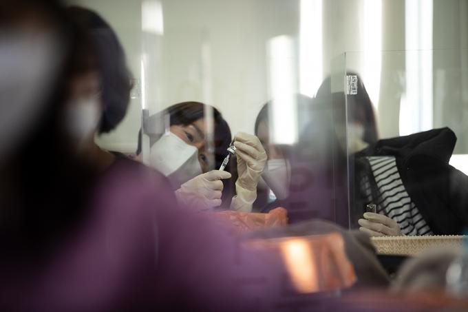 17일 오후 서울 중구 대한간호협회 취업인력교육센터에서 코로나19 감염병 전담병원, 생활치료센터 등에 투입될 간호사들이 코로나19 백신 접종 실습을 하고 있다.