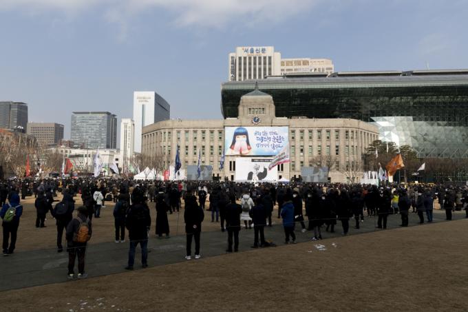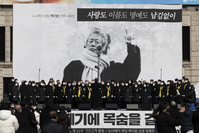고 백기완 통일문제연구소장의 영결식이 19일 오전 서울 중구 서울광장에서 거행되고 있다.