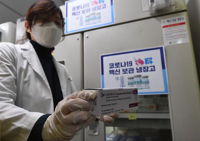 국내 첫 코로나19 백신 접종을 하루 앞둔 25일 오후 서울 송파구보건소에서 의료진이 아스트라제네카(AZ) 백신을 검수하고 있다.