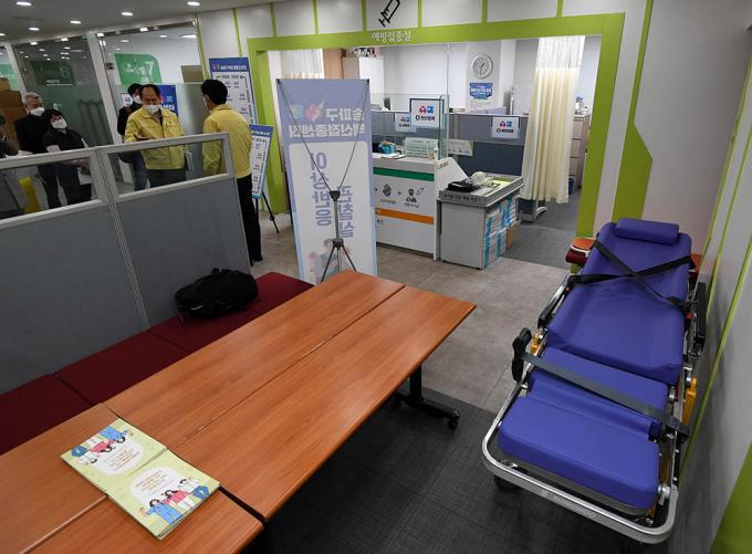 코로나19 백신 접종을 하루 앞둔 25일 서울 송파구보건소에서 의료진이 분주하게 움직이고 있다.