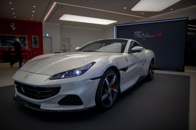 4일 오전 서울 서초구 페라리 반포 전시장에서 페라리의 8기통 그랜드투어러 '포르토피노 M'이 전시되어 있다. '포르토피노 M'은 620마력의 V8 엔진과 8단 듀얼클러치 변속기, 페라리 GT 스파이더 모델 최초로 레이스 모드가 추가된 5가지 모드의 마네티노를 탑재했다.
