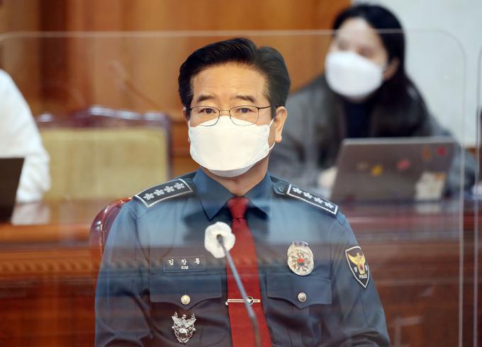 김창룡 경찰청장이 10일 오전 서울 종로구 정부서울청사에서 열린 신도시 투기의혹 수사협력 관련 회의에 참석하고 있다.