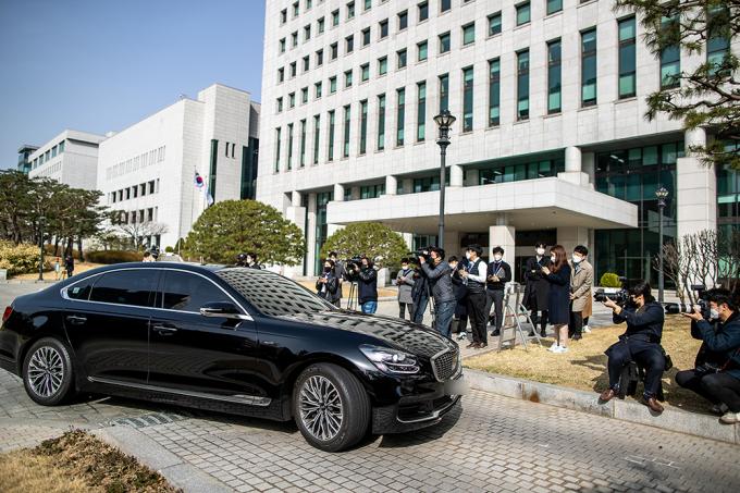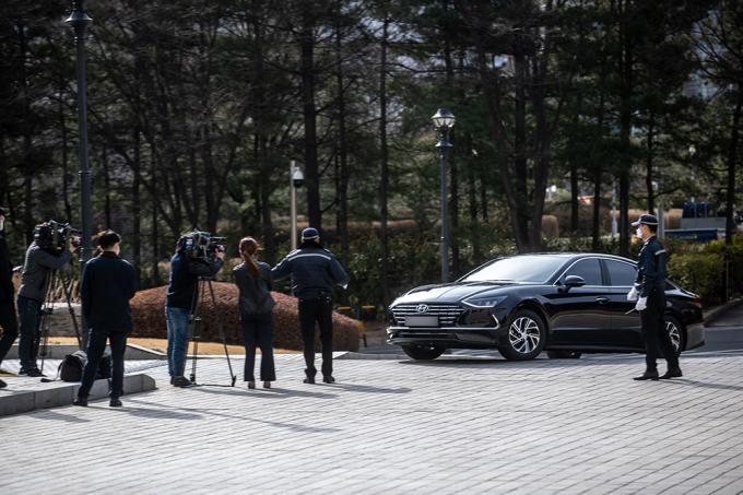대검찰청이 최근 무혐의 처분된 '한명숙 전 국무총리 모해위증 의혹' 사건에 대해 재심의를 위한 부장회의가 열릴 예정인 가운데 19일 오전 서울 서초구 대검찰청으로 고검장들이 탑승한 차량들이 들어가고 있다.