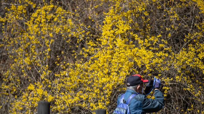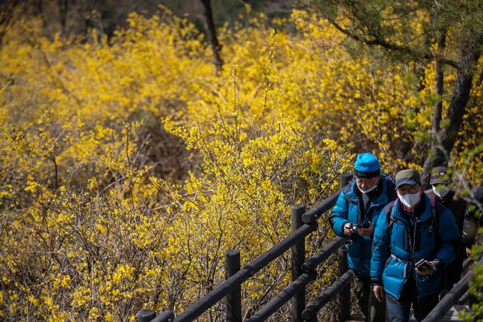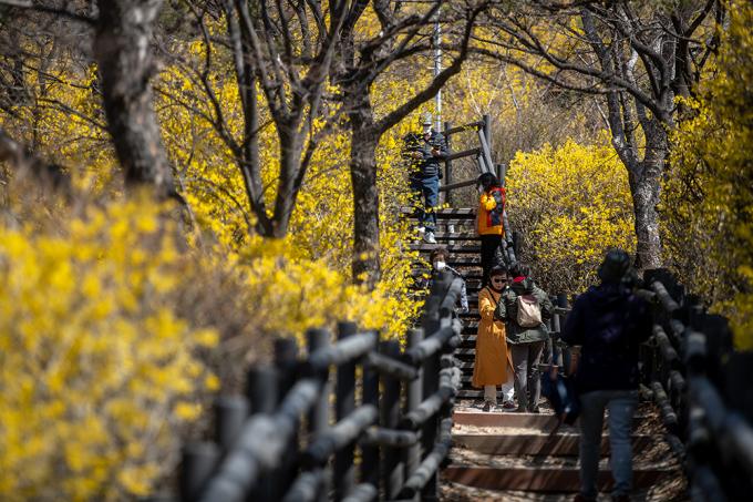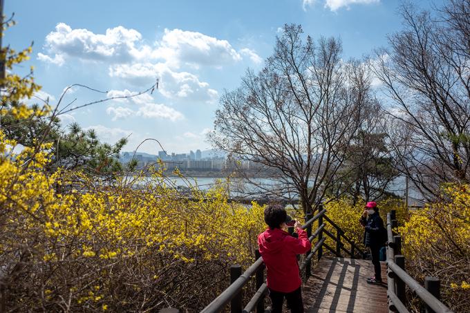 날씨가 심술을 부린다고 오는 봄을 어찌 막을까. 꽃샘추위가 찾아온 22일 서울 응봉산은 완연한 봄 풍경이다. 개나리,매화가 뒤덮은 능선에 상춘객의 발걸음이 분주하다.