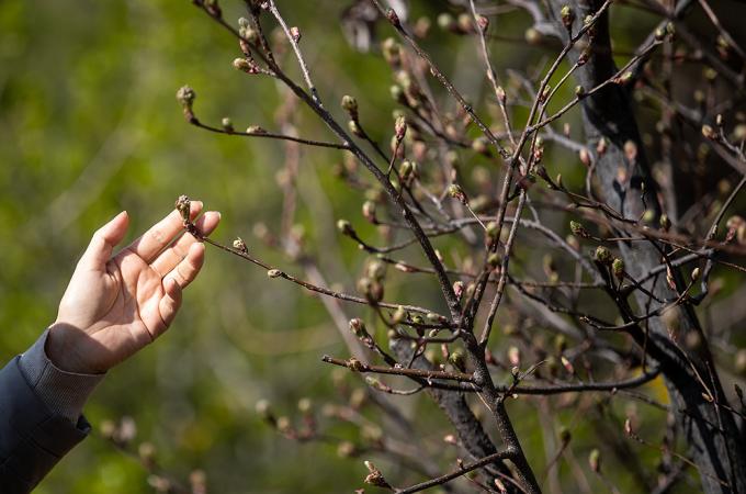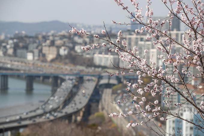 완연한 봄 날씨를 보인 22일 서울 성동구 응봉산에 매화가 피어 있다.