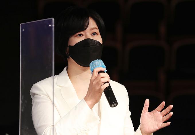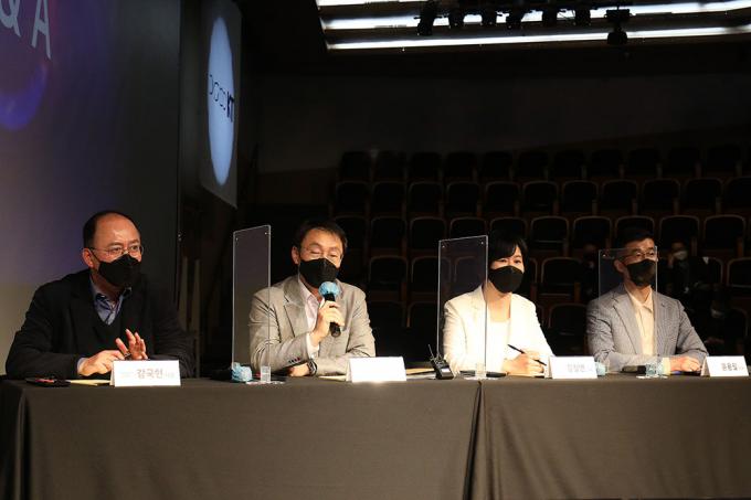 김철연 KT 스튜디오지니 공동 대표가 23일 오전 서울 종로구 광화문 KT스퀘어에서 열린 KT 미디어컨텐츠 사업전략 발표 기자간담회에서 취재진의 질문에 답변하고 있다.