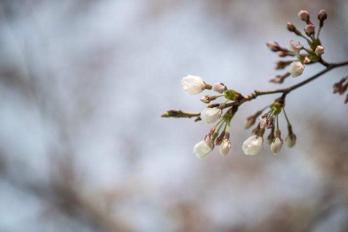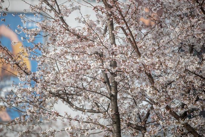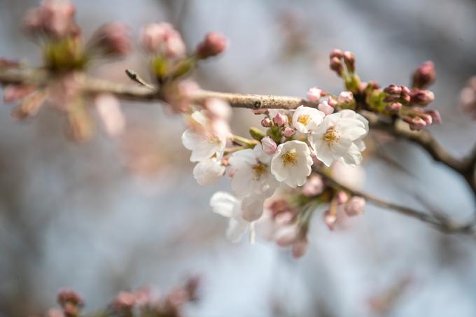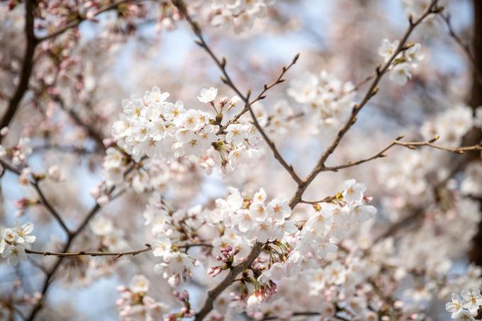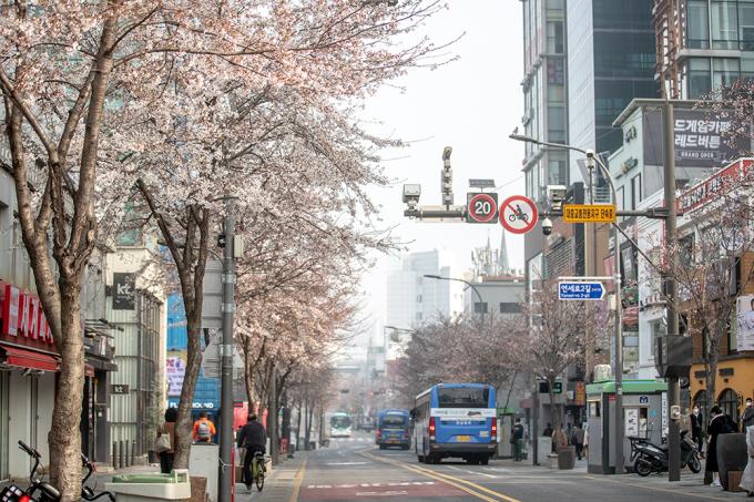 26일 오전 서울 서대문구 신촌 연세로에 벚꽃이 피어있다. 서울 벚꽃 개화 기준인 종로구 서울기상관측소 왕벚나무는 지난 24일 개화했다. 이는 지난해보다 3일 더 빠르며, 1922년 관측이 시작된 이래 가장 빠른 벚꽃 개화다.
