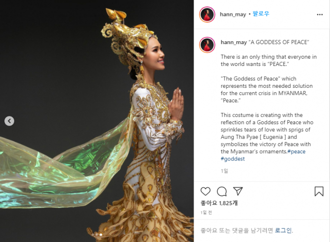 아울러 "미얀마 사람들은 민주주의를 위해 싸우려 거리를 걷고 있다"면서 "미얀마를 대표해 전쟁과 폭력의 멈춤을 지지하며 미스 그랜드 인터내셔널의 무대를 걷겠다"고 말했다.