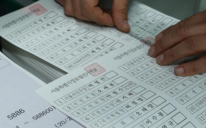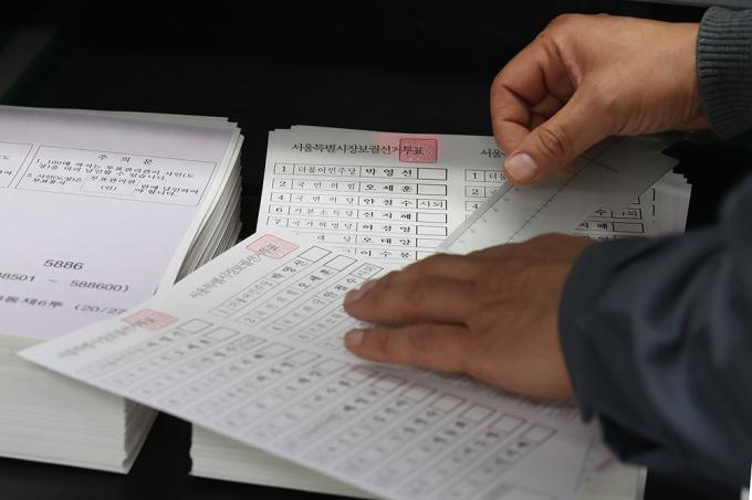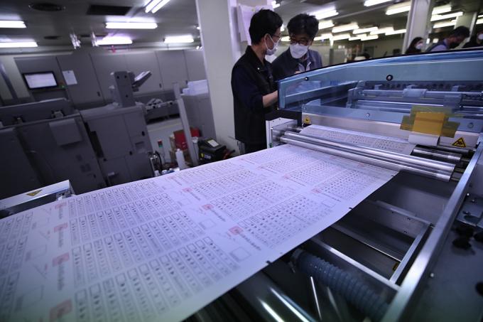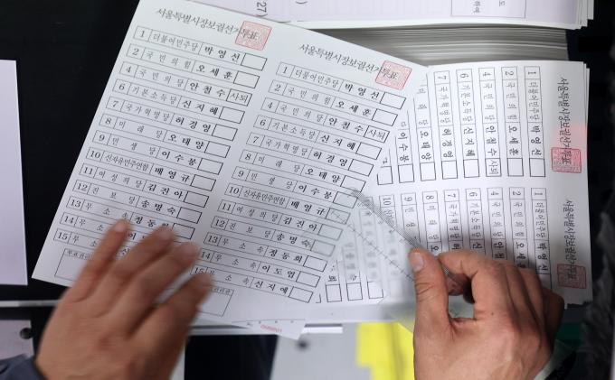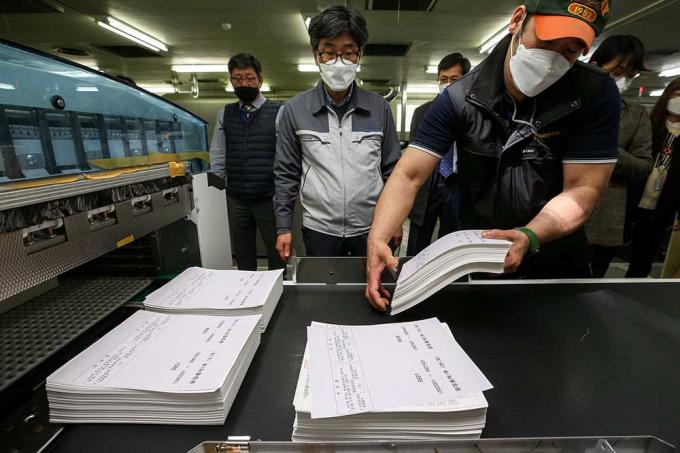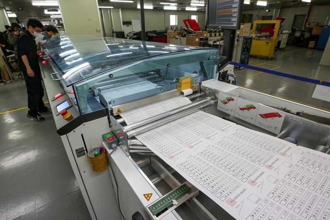 29일 오전 경기 안양시에 위치한 한 인쇄업체에서 4·7 서울시장 보궐선거에 사용될 투표용지가 인쇄되고 있다.