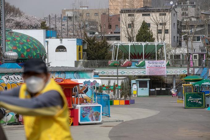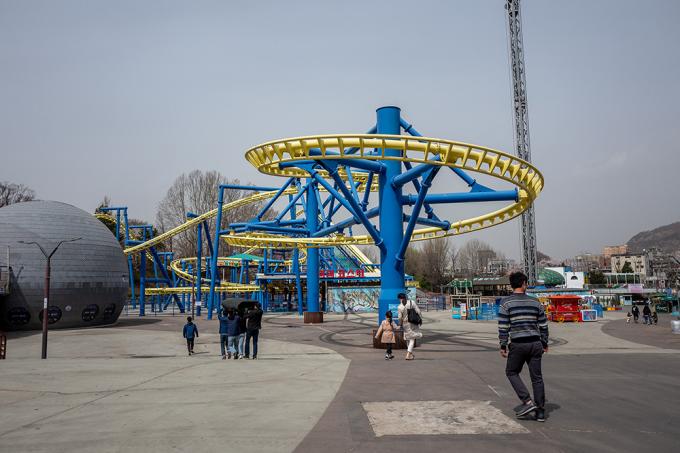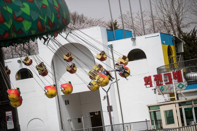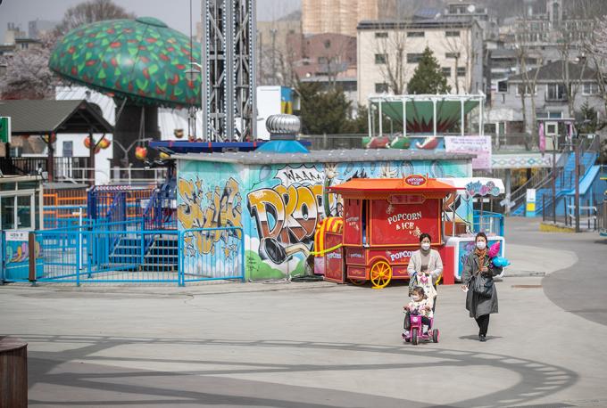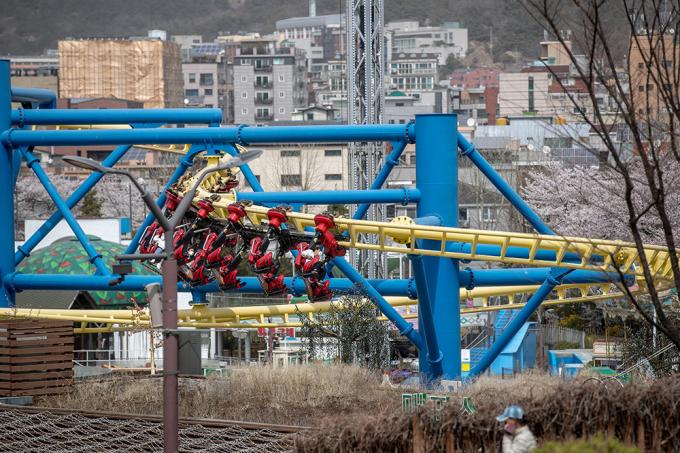 29일 서울 광진구 어린이대공원 놀이동산을 찾은 시민들이 놀이기구를 즐기고 있다. 서울시설공단은 어린이대공원 놀이동산의 낡은 놀이시설물을 철거하고 새 운영사를 선정했다. 공식 재개장은 4월 1일이다.