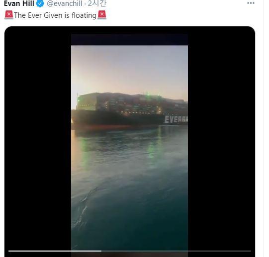 해양 서비스 제공 업체인 인치케이프도 트위터를 통해 좌초했던 선박이 성공적으로 다시 물에 떴다고 전했다.