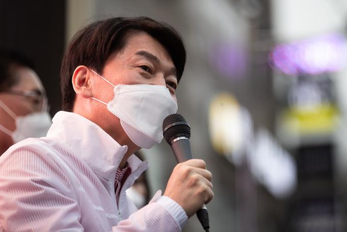 안철수 국민의당 대표가 2일 오후 서울 양천구 목동깨비시장에서 열린 오세훈 후보의 집중유세에서 유권자들에게 지지를 호소하고 있다.
