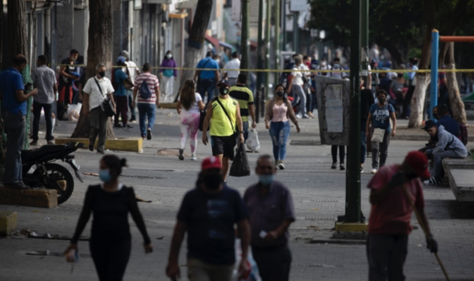 7일(현지시각) 베네수엘라 카라카스 인근 카티아에서 주민들이 코로나19 봉쇄에도 아랑곳하지 않고 거리를 돌아다니고 있다. [카라카스=AP/뉴시스]