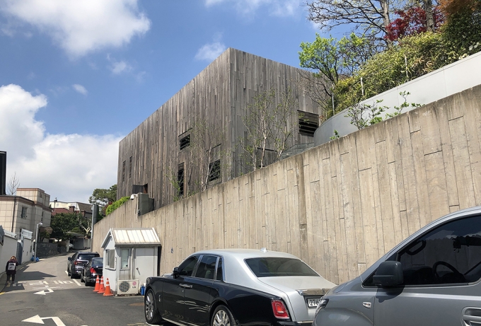 이 저택은 이 이사장이 남산캐슬에 두 번째로 소유하는 주택이 될 전망이다. 그는 남산캐슬 서쪽 이태원동 13X-XX(위 [그림] 속 ①)에도 또 다른 저택을 갖고 있다. 지하2층, 지상2층 규모다. 연면적 1786.59㎡(540평)로 2005년 완공된 이 집은 국토교통부가 공시한 올해 개별주택가격이 156억3000만 원. 건물 등기부등본에 따르면 이 이사장은 2005년 10월 이 집으로 이사 왔다. 2019년 이사장으로 취임한 삼성복지재단 등기부등본에도 이곳이 그의 주소지로 표기돼 있다. 바깥에서 이 이사장 자택은 외관만 어렴풋이 보인다. 높은 담장과 나무들 때문이다. 키 큰 소나무 사이사이로 봄에도 잎이 빨간 단풍나무가 있어 자택 내 사생활 보호는 물론 미관까지 신경 쓴 모습이다.